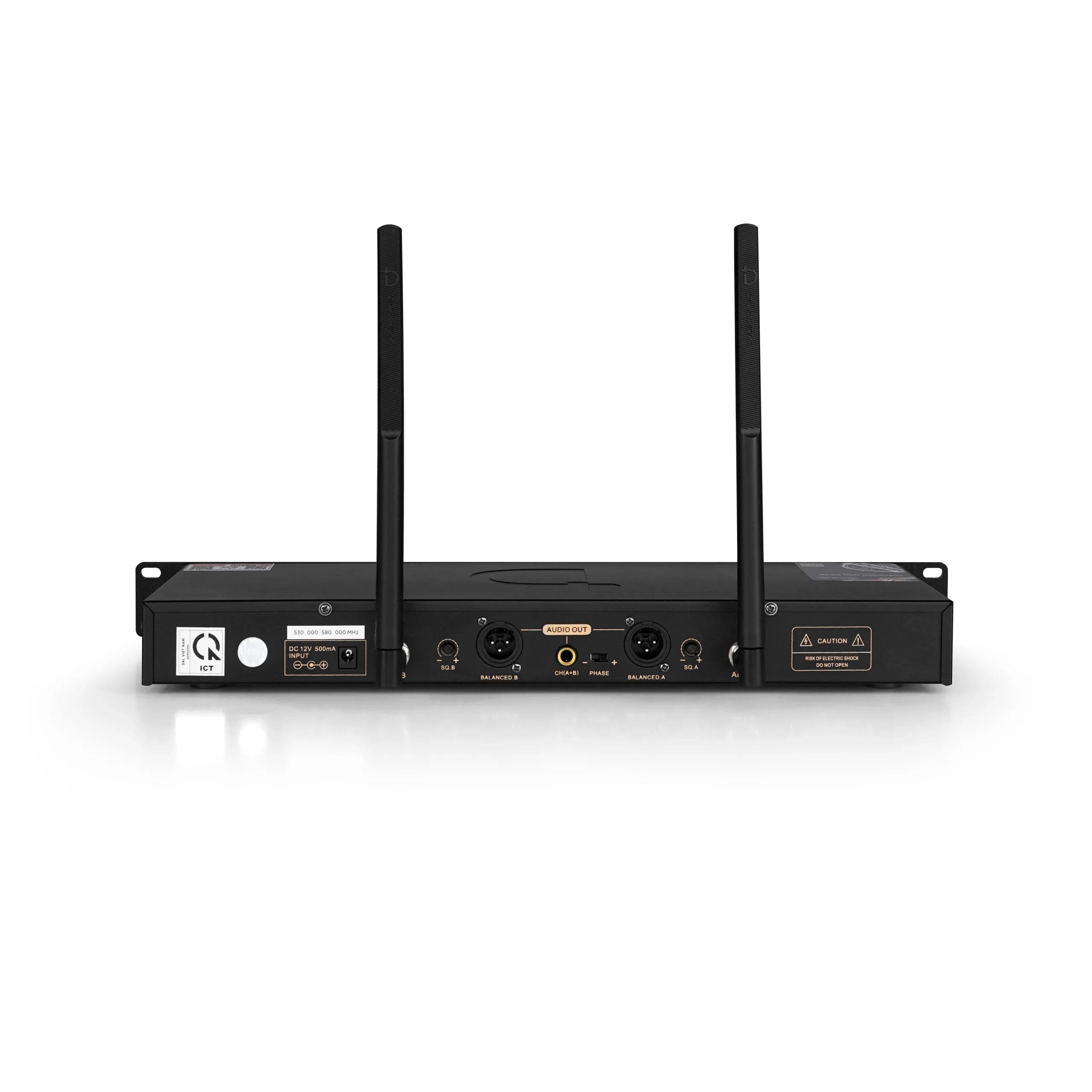 | – Tần số hoạt động 530.000 – 580.000MHz – Số kênh có thể điều chỉnh 100×2 – Chế độ dao động: tổng hợp tần số vòng khóa pha (PLL) – Ổn định tần số: Plus hoặc minus 10PPM – Chế độ nhận dạng: chuyển đổi tần số siêu ngoại sai thứ cấp – Đường pilot : digital pilot – Độ nhạy nhận được: -95–95DBM – Tần số thu âm: 40-18000Hz – Biến dạng hài hòa: 0.5% or less – Tỷ lệ nhiễu tín hiệu: 110db hoặc cao hơn – Cổng âm thanh ra: đầu ra XLR cho mỗi kênh(XLR) và đầu ra trộn hai kênh(jack 6mm) – Công suất truyền tải: 3-30mw – Chế độ điều chế: Frequency modulation(FM) – Thông số pin sử dụng: 2 pin AA tiêu chuẩn 1.5v – Thông số adapter nguồn cung câp: 100-240VAC 50-60Hz to 12VDC power adapter – Công suất: 10W hoặc hơn Xuất xứ: Trung Quốc |